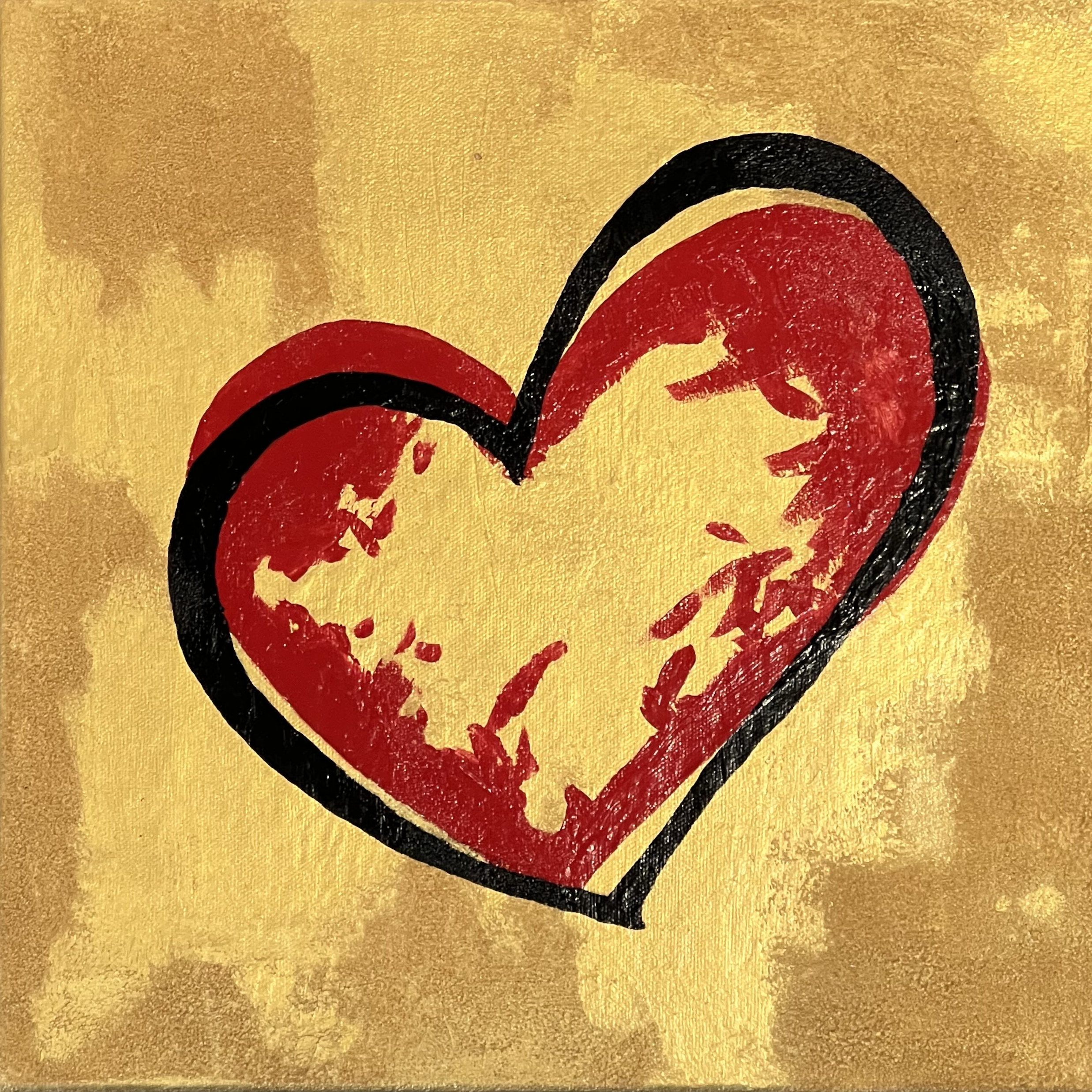 12 x 12 Un cœur rouge-or qui brûle doucement.